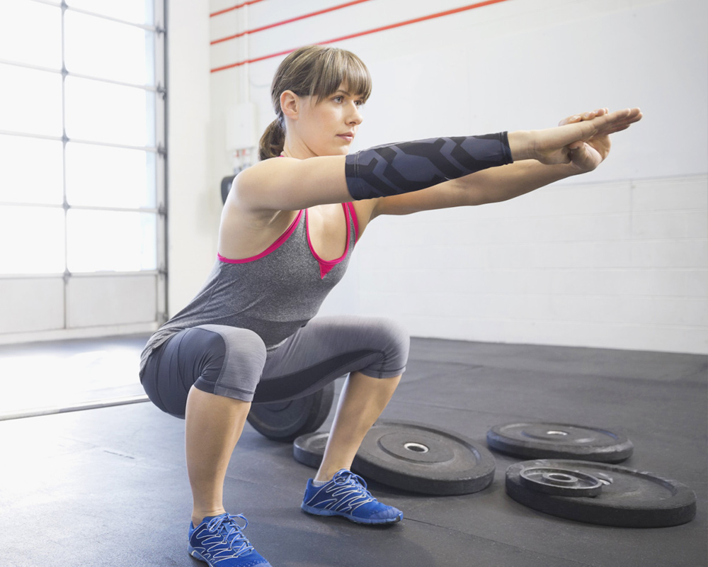 Squat là bài tập đơn giản mà chị em có thể tập tại phòng tập, tại nhà hoặc văn phòng. Động tác này giúp hông, đùi giảm mỡ và săn chắc hơn.